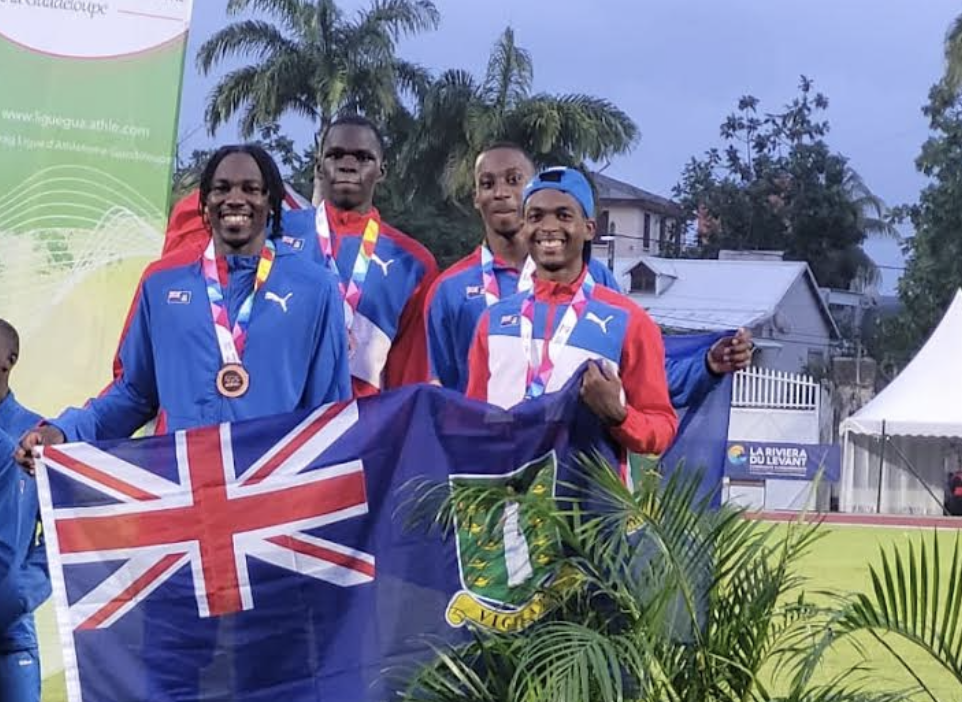 Local bronze medallists in the men’s 4×100 metre event, Vadley Sylvester Jr, Mikkel Bassue, Ke’Andre Campbell and Malik John.Some 29 countries from the Caribbean participated in the games. The BVI took part in two of the seven sports — 3X3 basketball (women) and track & field.