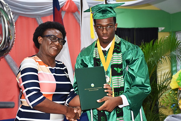 He was met with cheers when he noted that the SDA school was home to two Gen-Y Factor winners. They are 2017 winner Shauna-Kay Miller who also is a teacher at the school, as well as last year’s victor Durnel Sanderson who was among the graduates yesterday.