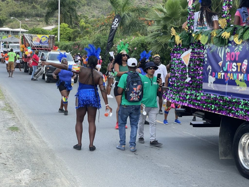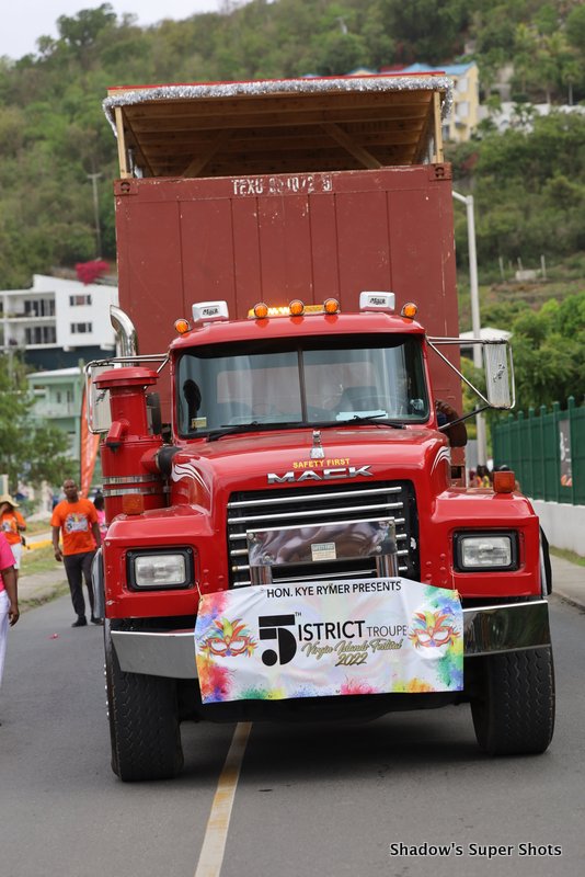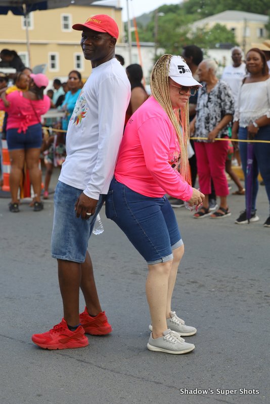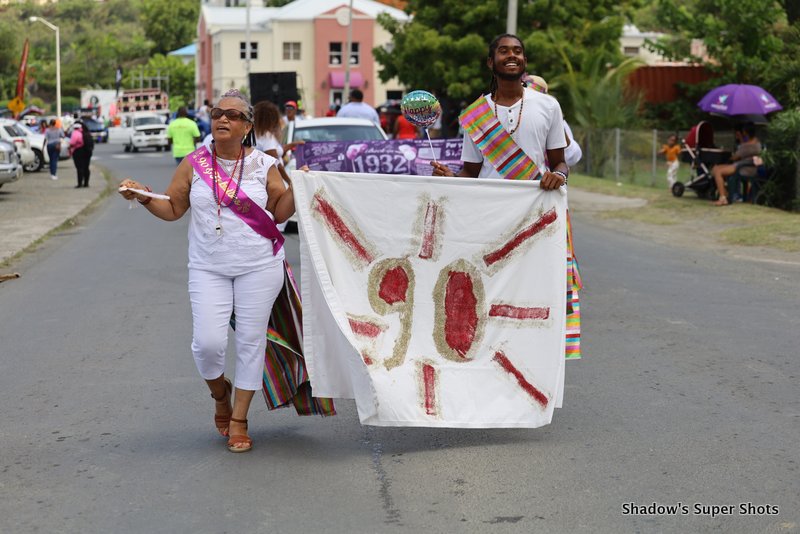 The Heritage Dancers passed shortly after with band members playing fungi music to remind people of authentic BVI sounds. They were followed by District Five led by District Representative Kye Rymer.