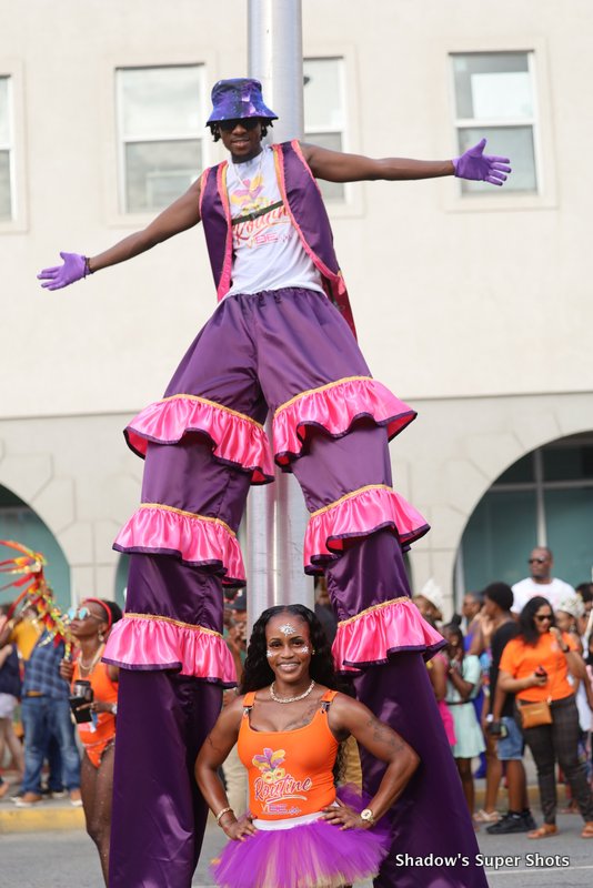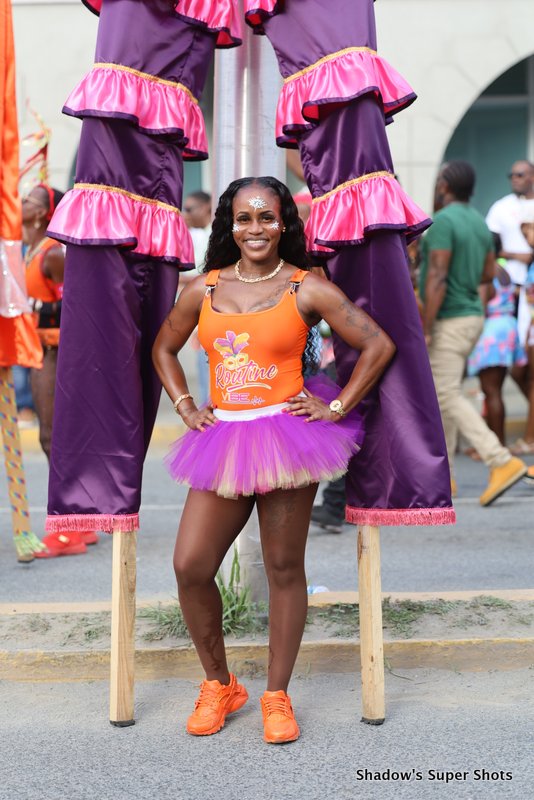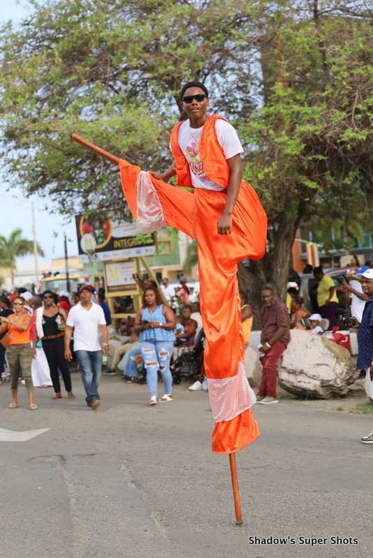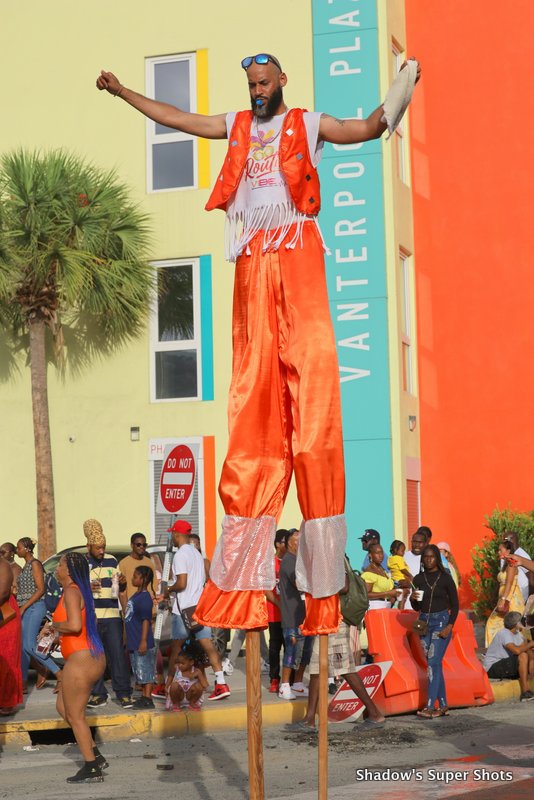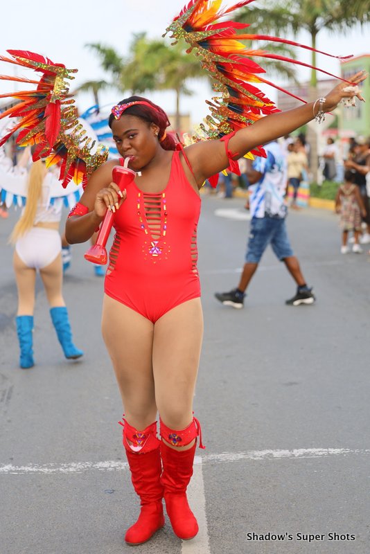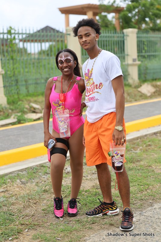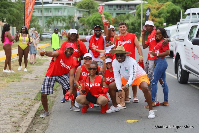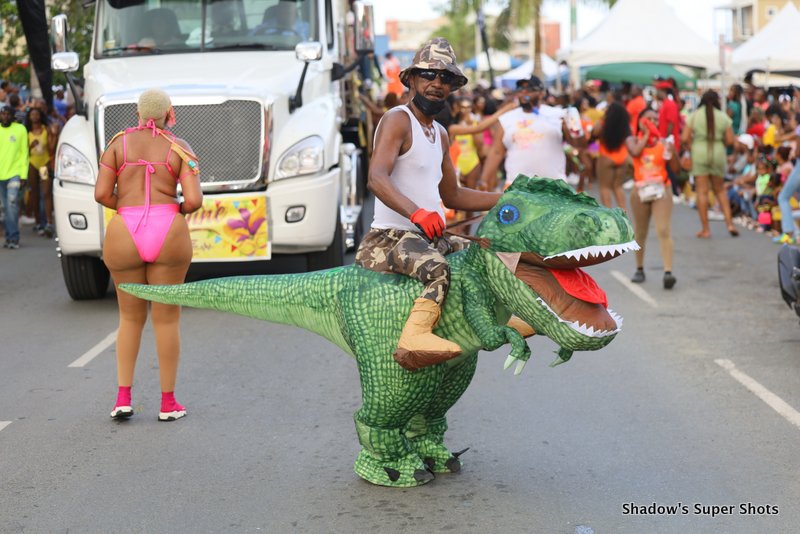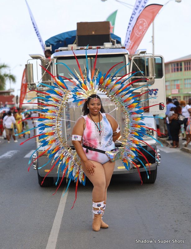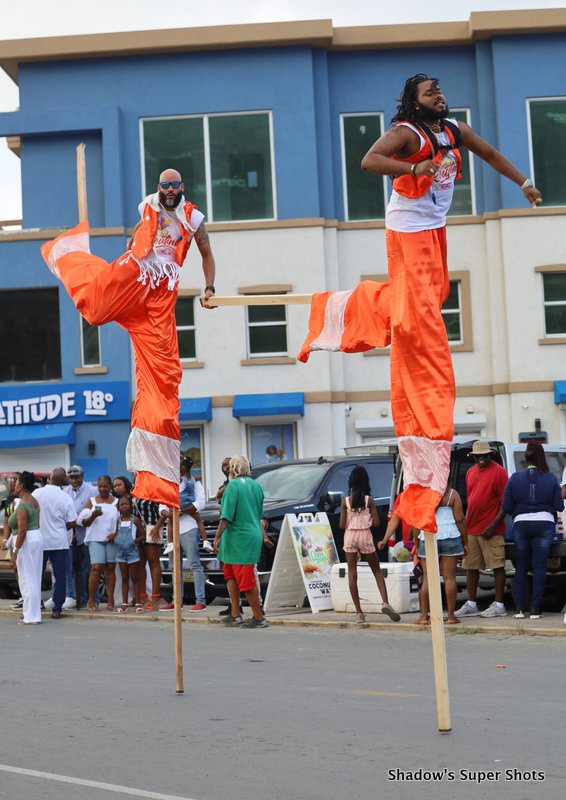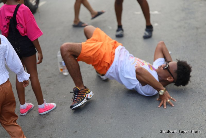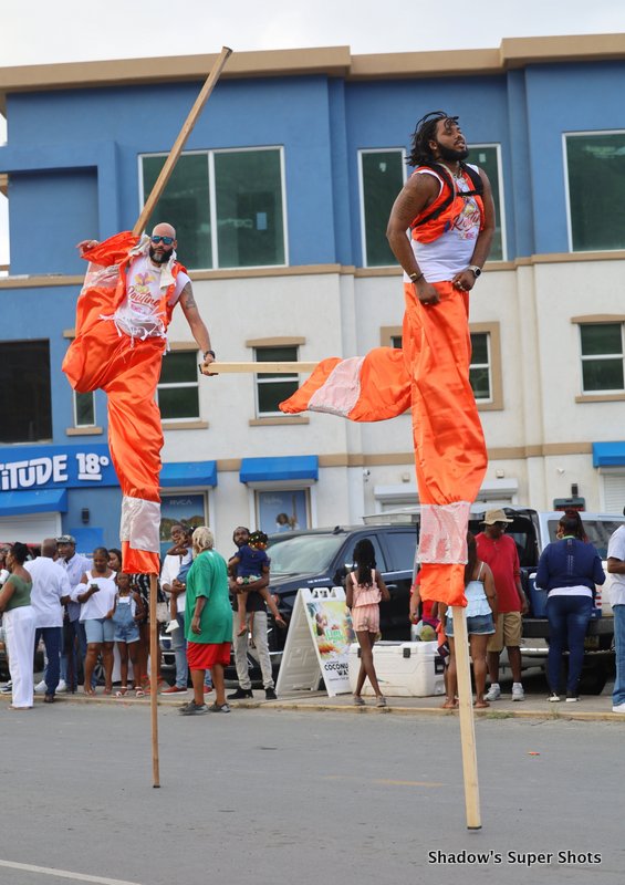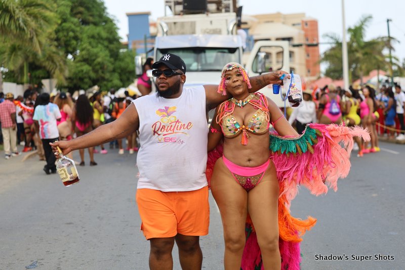 Digicel passed shortly after and its representatives handed out bags and hats to patrons along the way. Vibe Routine truck came with the largest crowd, and the Mocko Jumbies accompanied them.