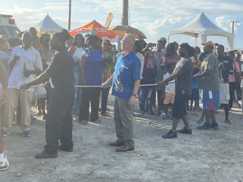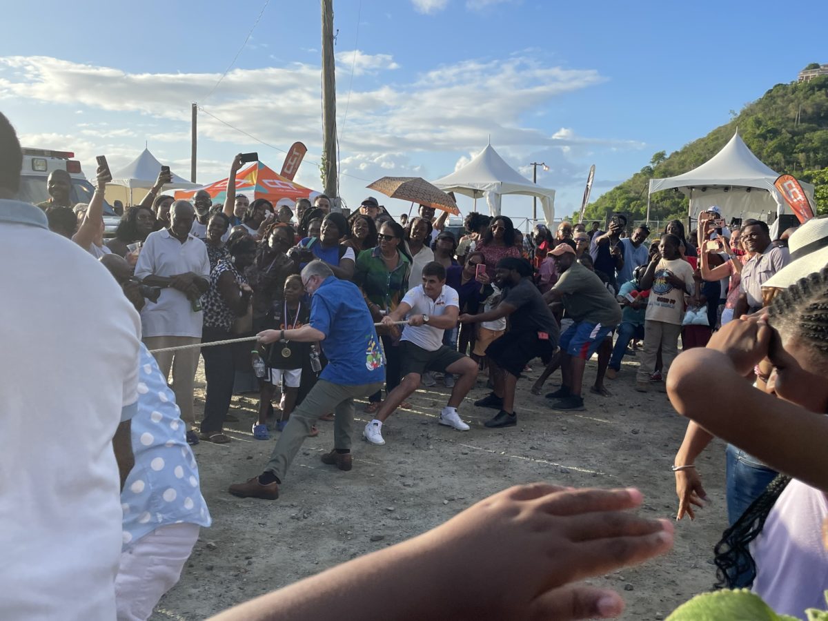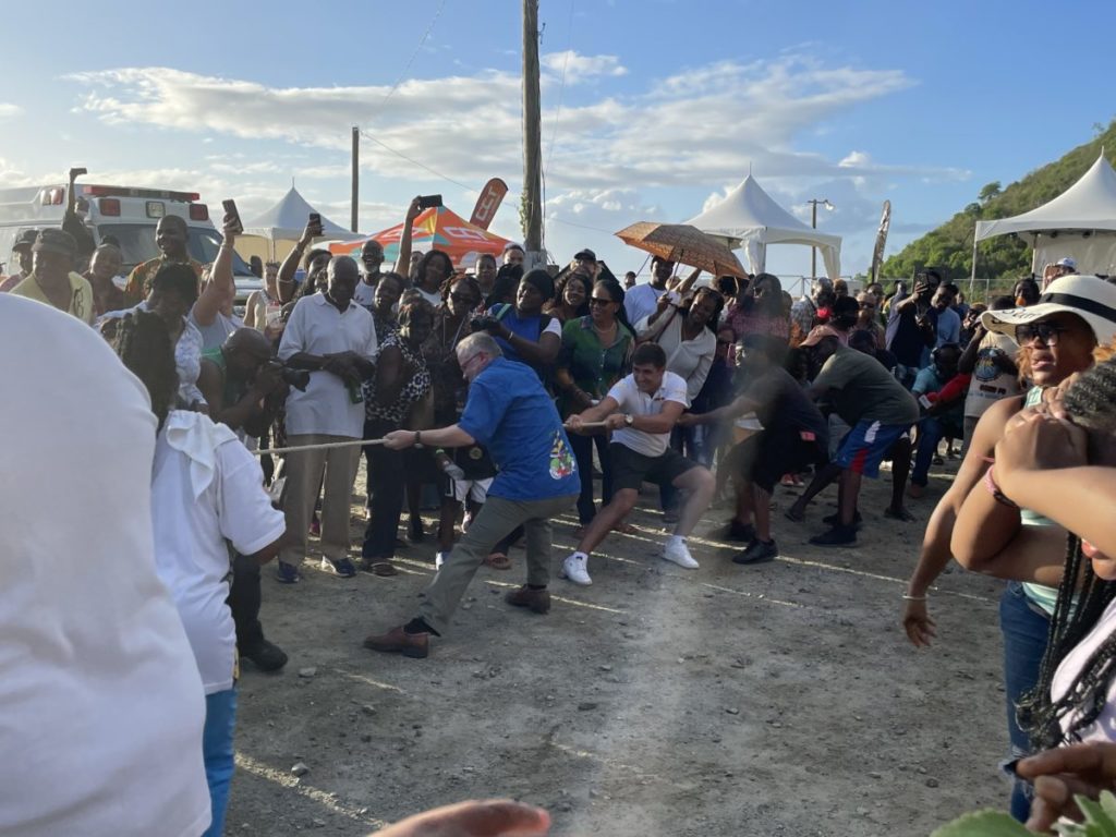 In this BVI News photo, Governor John Rankin is locked in a rug-of-war competition at the Carrot Bay Cultural Day event on Friday, August 5.By Fitsroy Randall, BVI News Staff