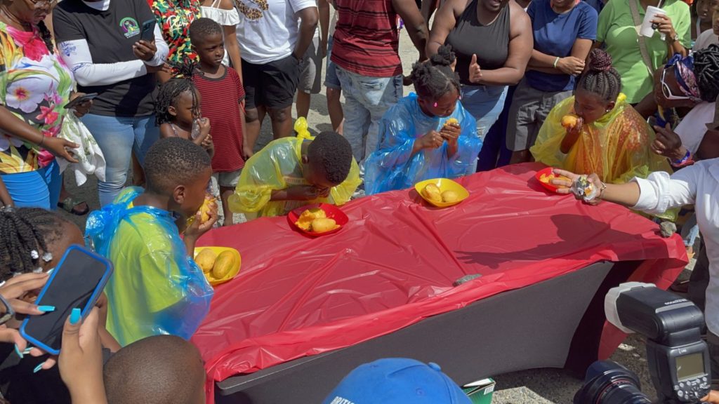 For their efforts, first place was awarded $60 and second place received $20. In the adult equivalent, it was three women against one man to see who could eat five mangoes in under two minutes. It was the man who emerged victorious in the end.
